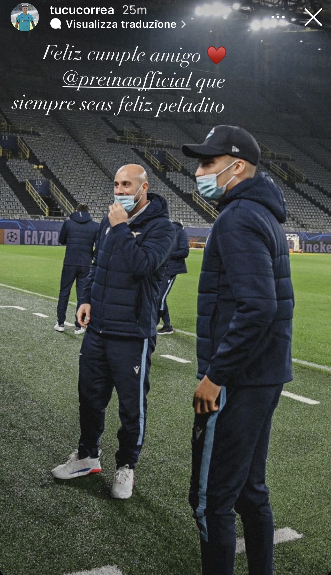 Non è più un calciatore della Lazio da qualche settimana ma i rapporti che si creano nello spogliatoio superano i limiti del tempo e dello spazio. Per questo nel giorno in cui il portiere della Lazio Pepe Reina spegne 39 candeline, oltre ai messaggi di tutta la squadra, anche il Tucu Correa ha voluto mandare un messaggio al suo ormai ex compagno: "Buon compleanno amico, che tu sia sempre felice!".