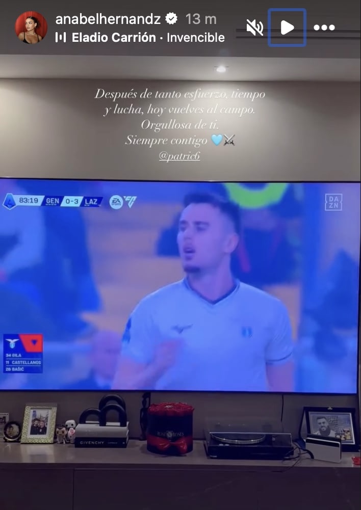 A festeggiare è anche la sua dolce metà Anabel che, al termine della sfida, ha dedicato un dolce messaggio allo spagnolo: "Dopo tanto impegno, tempo e fatica, oggi torni in campo. Fiera di te, sempre con te".