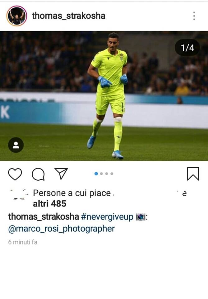Resta l'amaro in bocca, dopo la sfida con l'Inter, dopo le tante occasioni create nel primo tempo, senza riuscire a incidere. Ma c'è anche tanta determinazione, in casa Lazio. Tanta voglia di ripartire al meglio già dalla prossima partita, quella contro il Genoa. Vogliono rimettersi in carreggiata, i biancocelesti, non intendono mollare. Lo ha ribadito anche Thomas Strakosha, attraverso un post su Instagram. Il portiere biancoceleste - con qualche responsabilità sul gol subito ieri, ma anche protagonista di una doppia parata strepitosa su Barella e Politano - ha condiviso alcune foto della partita, accompagnando le immagini con un hashtag eloquente: #nevergiveup, non mollare mai. Di questa frase, l'estremo difensore albanese ne ha fatto il proprio motto. In pieno stile Lazio. Dopo la sconfitta di ieri, c'è un motivo in più per crederci. Le aquile non si arrendono: il messaggio è chiaro.