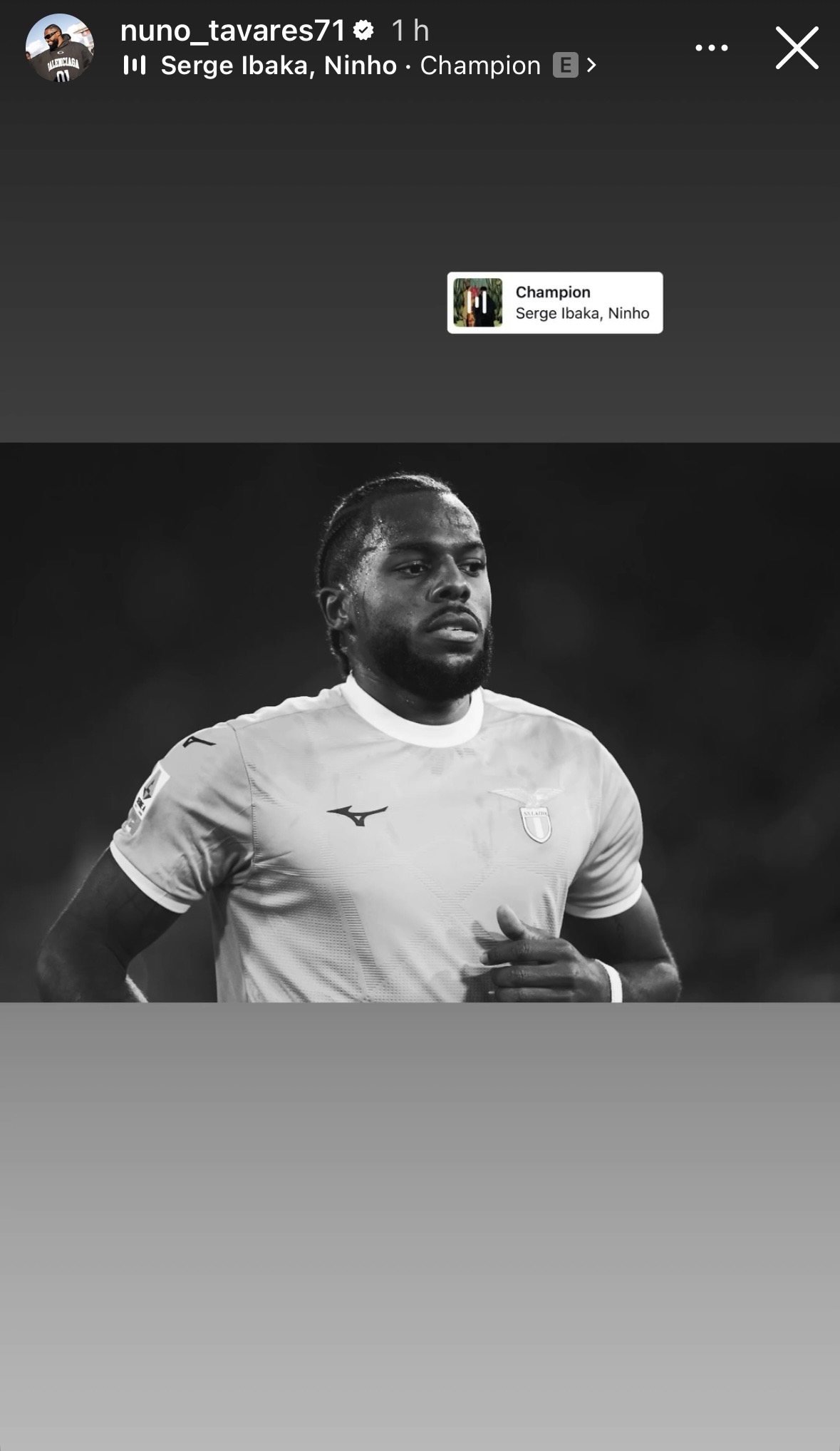 Nel mentre Nuno ha pubblicato una storia social con un scatto in bianco e nero con la maglia della Lazio accompagnato da una canzone molto particolare. Il brano si intitola Champion e questo è un estratto molto significativo: "All'ombra delle luci e dello spettacolo, ho semplicemente pregato nel buio. Vivi e muori da campione, gli altri nemmeno ci credevano. Come un'aquila ho volato sopra le nuvole...".