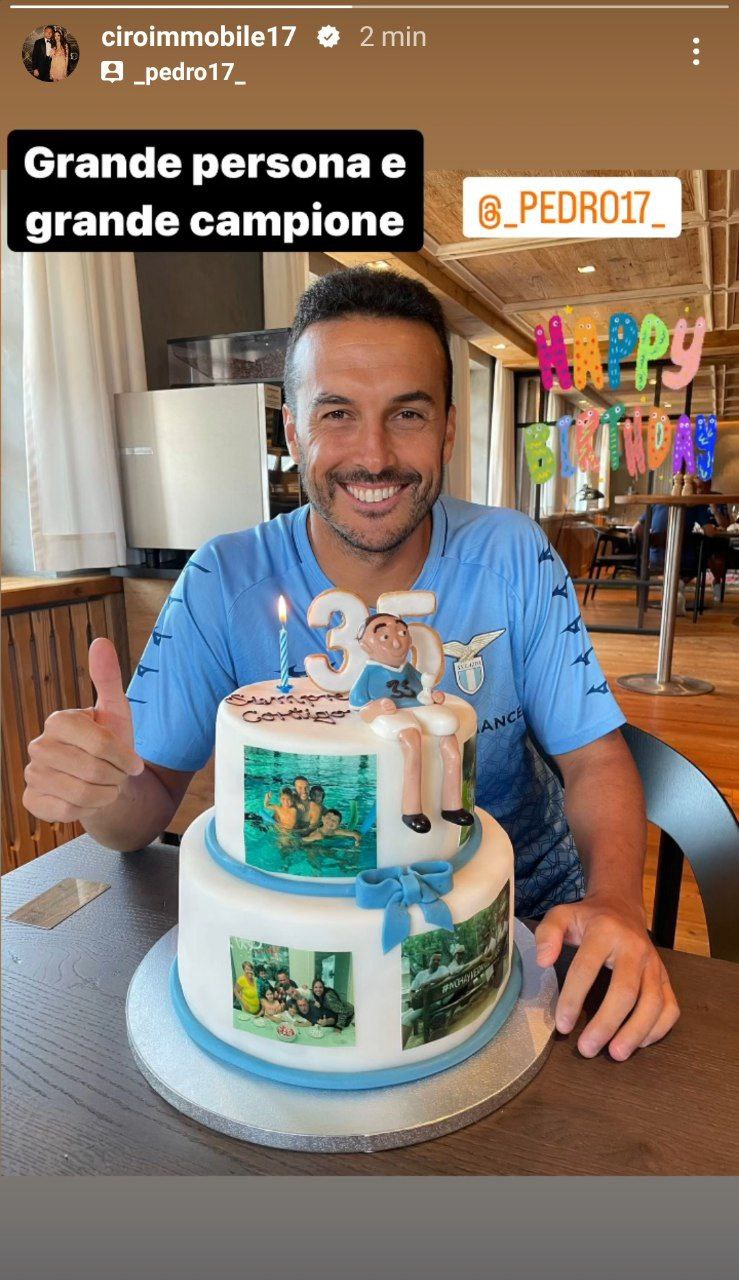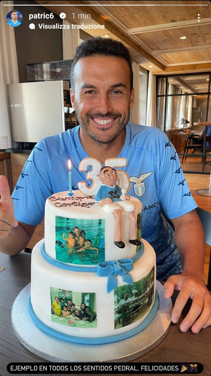 Dopo quelli della Lazio, Pedro ha ricevuto anche gli auguri da parte di Ciro Immobile. Senatore e capitano della squadra biancoceleste, l'attaccante ha voluto mandare un messaggio pubblico al compagno. Condivisa una foto che ritrae l'ex Barcellona dietro alla torta preparata per i suoi trentacinque anni, il bomber della Lazio ha aggiunto: "Grande persona e grande campione". Subito dopo è toccato a Patric che, pubblicata la stessa foto, ha scritto: "Esempio in ogni sentimento. Auguri".