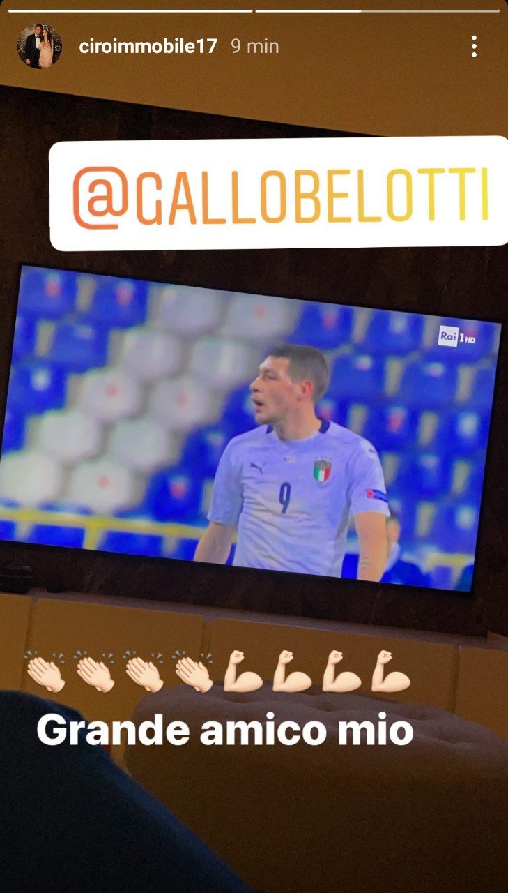 Si sta giocando in questi minuti l'ultimo impegno dell'Italia prima della ripresa del campionato di Serie A, la gara contro il Bosnia. Alla spedizione azzurra non ha potuto partecipare Ciro Immobile, ancora alle prese con la positività al gene N. L'attaccante, tuttavia, non ha voluto perdersi per nulla al mondo la sfida di questa sera. E al gol del vantaggio dell'Italia firmato Belotti, il bomber d'Europa ha pubblicato su Instagram una 'story' proprio dedicata al calciatore del Torino: "Grande amico mio".