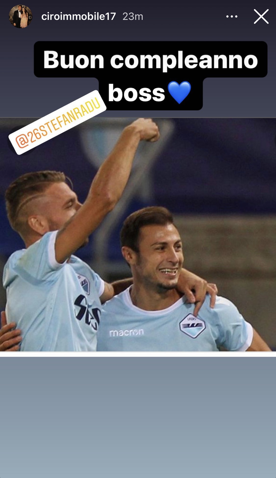 Lazio, Immobile festeggia Radu: "Auguri boss!" - FOTO