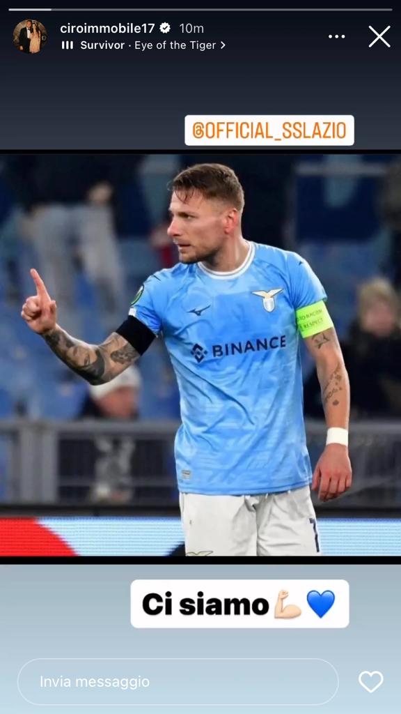 Settimana importante per la Lazio che oggi a Formello ha iniziato la preparazione in vista della sfida col Sassuolo. Saranno giorni fondamentali anche per Ciro Immobile, al lavoro per recuperare dall’infortunio che lo ha costretto a fermarsi in occasione della gara contro l’Atalanta. Il capitano biancoceleste, dopo le dichiarazioni rilasciate a Il Messaggero, è volato a Dinseyland Paris per godersi la famiglia e ricaricare le energie. È tornato con entusiasmo e voglia di riprendersi il suo posto, lo testimonia la sua ultima story su Instagram. Un suo scatto e un messaggio: “Ci siamo” con l’emoticon del braccio in segno di forza e un cuore blu.
