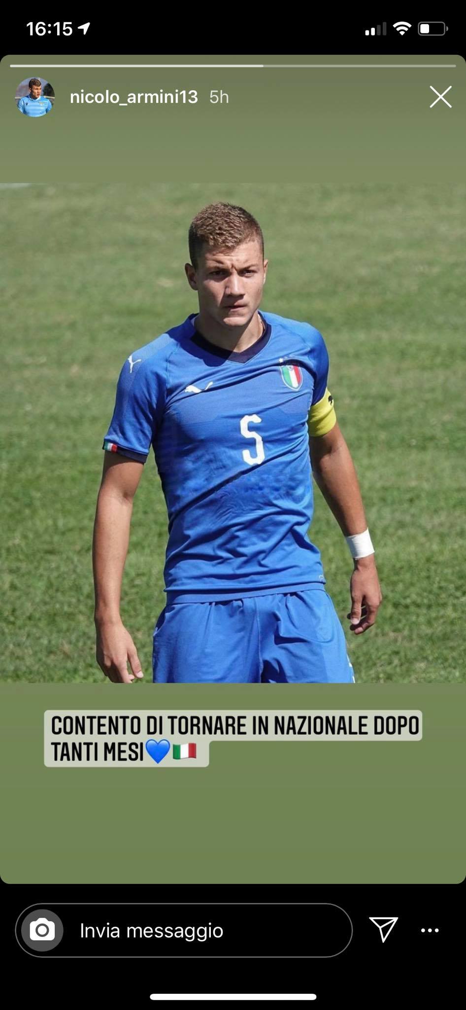 Bella soddisfazione per il capitano della Primavera della Lazio Nicolò Armini. Il difensore, in ritiro ad Auronzo di Cadore con la prima squadra, è infatti stato convocato dal ct Alberto Bollini per lo stage la Nazionale Under 20 svolgerà a settembre. Il calciatore biancoceleste ha espresso tutta la sua gioia con un post sui social: "Contento di tornare in Nazionale dopo tanti mesi".