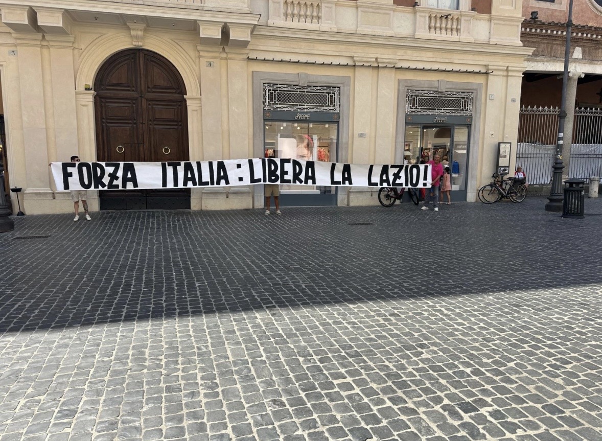 La protesta dei laziali non si ferma. Fuori dalla sede di Forza Italia, è comparso, per l'ennesima volta, uno striscione dei tifosi della Lazio contro Claudio Lotito. "Forza Italia: libera la Lazio!", si legge sullo striscione, il quarto nel giro di pochi giorni. Di seguito l'immagine.