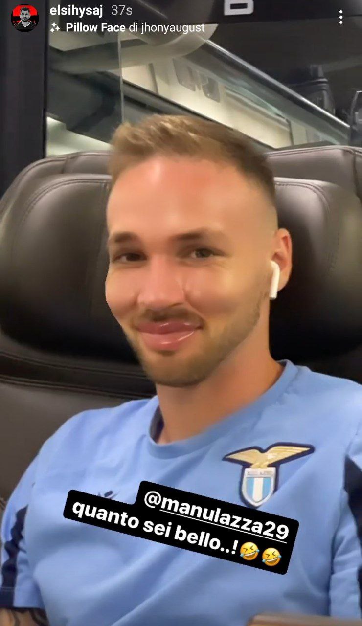 Alla vigilia della sfida contro il Milan, la Lazio è in viaggio per raggiungere la città lombarda. E in treno è anche il momento giusto per stemperare un po' la tensione. Lo conferma l'Instagram Story condivisa da Elseid Hysaj ma che ha per protagonista Manuel Lazzari. L'ex esterno della Spal viene ripreso con un particolare filtro "lifting" dal compagno di squadra, che sembra apprezzare. "Quanto sei bello", si legge accanto alle immagini.
