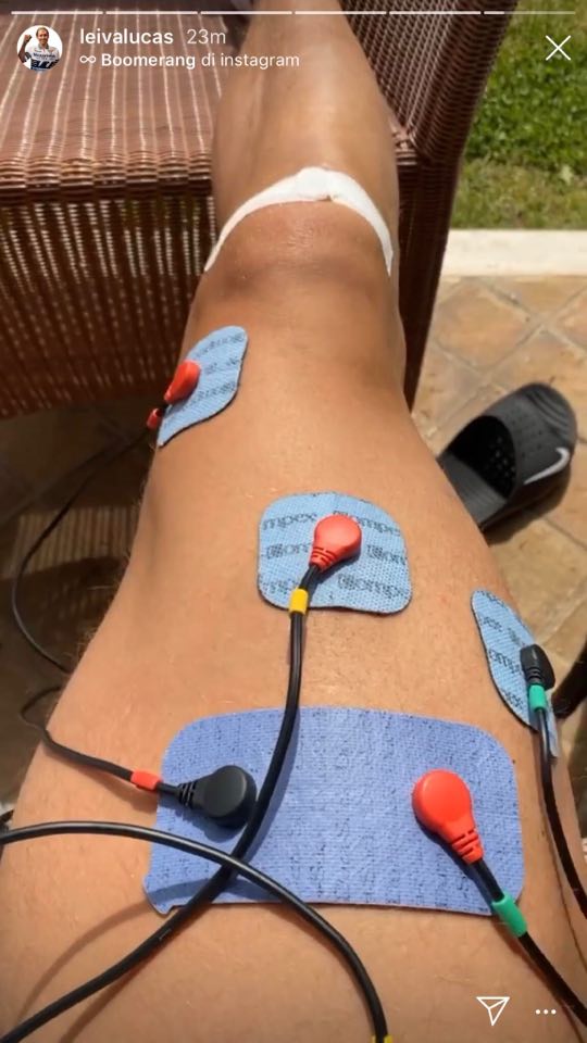 LAZIO, LEIVA RECUPERA - Prosegue la riabilitazione di Leiva dopo l'operazione necessaria al ginocchio e la pulizia del menisco. Il brasiliano riesce già a piegare la gamba, spera in un recupero abbastanza rapido per tornare il prima possibile a disposizione della Lazio. Su Instagram, tramite le sue storie, ha pubblicato un altro momento della sua giornata, ormai riempita con gli esercizi per il ginocchio: si vede la coscia di Lucas con quelli che sembrano diversi elettrostimolatori applicati sul muscolo, probabilmente per tenerlo in attività e rafforzarlo.