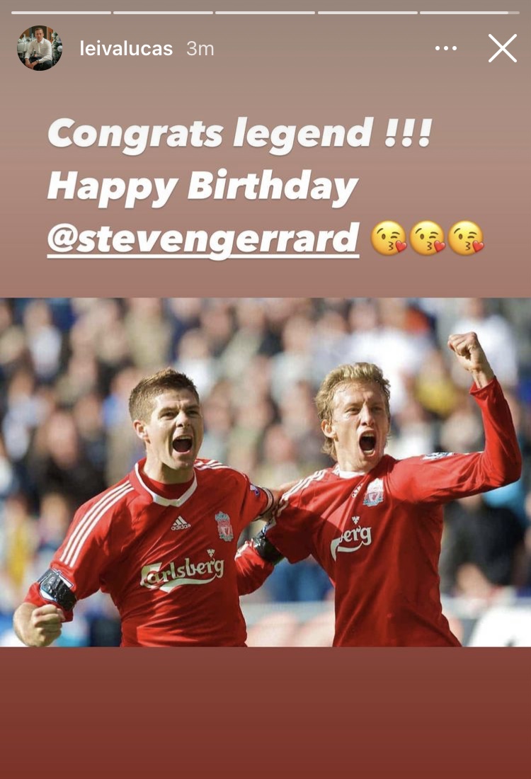 Steven Gerrard compie oggi 41 anni. L'ex centrocampista e bandiera del Liverpool, protagonista di oltre 500 presenze con i Reds e attuale allenatore dei Rangers, ha ricevuto tanti messaggi di auguri dagli ex compagni di squadra. Tra questi anche Lucas Leiva che ha condiviso tante battaglie con Gerrard sul prato verde di Anfield. Il centrocampista brasiliano della Lazio ha lasciato un piccolo messaggio per il suo amico su Instagram: "Congratulazioni leggenda. Tanti auguri".