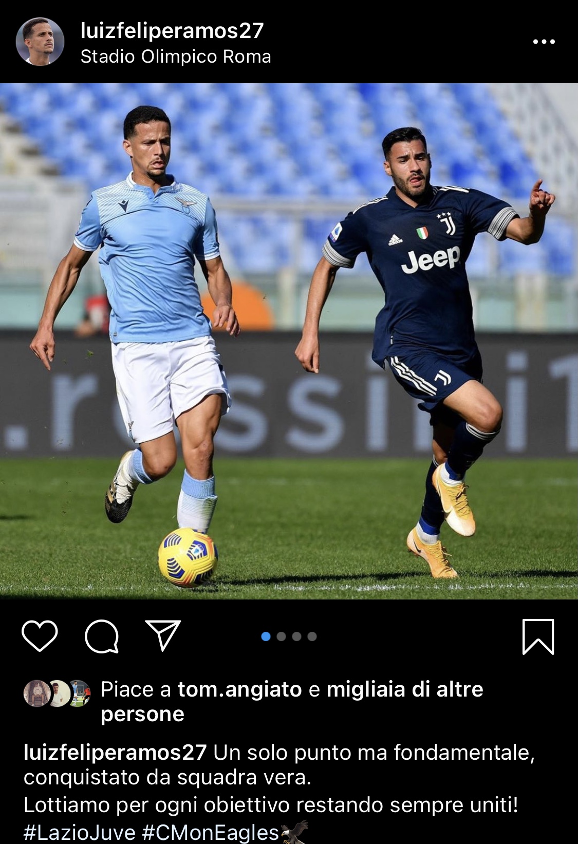 Un pareggio importantissimo quello conquistato dalla Lazio nel lunch match dello stadio Olimpico contro la Juventus. Una gara difficile in cui la squadra di Pirlo ha dominato per larghi tratti ma in cui i ragazzi di Inzaghi non hanno mai mollato fino alla rete al minuto '94 del "solito" Felipe Caicedo. Al termine del match questo il pensiero di Luiz Felipe su Instagram: "Un solo punto la fondamentale conquistato da una squadra vera. Lottiamo per ogni obiettivo restando sempre uniti!".