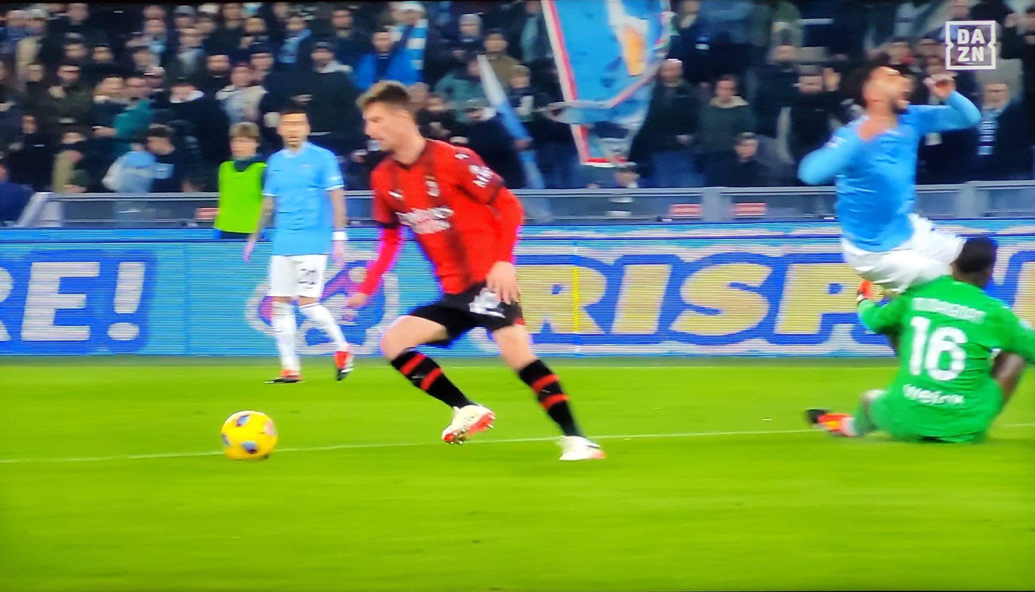 Lazio-Milan si infiamma subito. Dopo 12 minuti errore difensivo degli ospiti con Florenzi e Maignan che non si capiscono e combinano un mezzo pasticcio. Il portiere rossonero esce tocca il pallone ma dopo travolge Castellanos. Contatto netto e soprattutto in area di rigore. Grandi proteste dei biancocelesti in campo e in panchina. Di Bello fa segno che si può continuare a giocare e non viene neanche richiamato dal VAR, ma le immagini sembrano abbastanza chiare. C'erano tutti gli estremi per il penalty a favore della Lazio.
