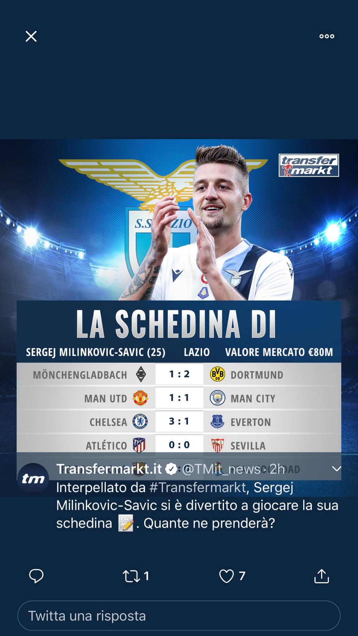 Chi non ha mai provato a indovinare i risultati delle partite? La classica schedina, insomma. Un po' come predire il futuro, ma ci deve essere anche una certa preparazione di fondo. Almeno per andarci vicino. Ci ha provato anche Milinkovic, che interpellato dal portale Transfermarkt ha giocato la sua schedina. Una bella prova per testare il suo intuito. Chissà se sarà bravo come sul rettangolo verde. Ecco la serie di partite su cui ha puntato il sergente: