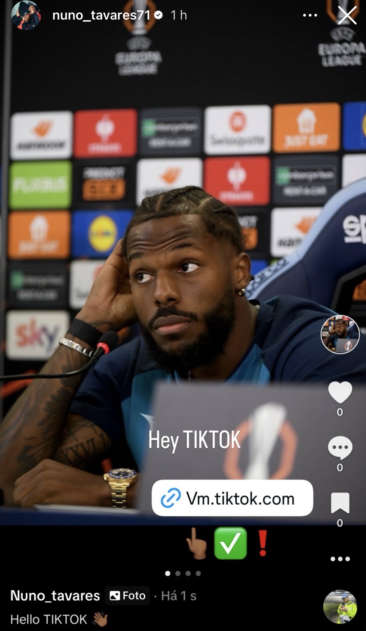 Nel mentre il portoghese ha deciso di aprire anche il suo personale profilo e di sbarcare su Tik Tok, come dimostrato dalla storia postata su Instagram in cui ha postato una sua foto, durante una conferenza stampa, con il link al nuovo profilo.