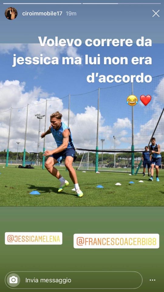 LAZIO SOCIAL - In casa Lazio l'atmosfera è serena e rilassata. Un gruppo unito e che si vuole bene è la prima base per inseguire un sogno chiamato Scudetto. Lo sanno bene anche Ciro Immobile e Francesco Acerbi. I due, compagni in biancoceleste e in Nazionale, sono molto amici e più di una volta si sono punzecchiati sui social. Dal "Ciao amore" detto dal difensore durante un'intervista è nato un divertente siparietto sui social che coinvolge anche Jessica. La moglie dell'attaccante ride di gusto anche dell'ultima puntata andata in scena oggi pomeriggio. Il numero 17 ha pubblicato una storia con un'immagine dell'allenamento che lo vede correre mentre Acerbi gli tiene l'elastico per aumentare la resistenza. "Volevo correre da Jessica ma lui non era d'accordo" il messaggio che accompagna l'istantanea, condivisa anche da Jessica. Siparietti e scenette che uniscono ancora di più la squadra verso un sogno tutto tricolore.