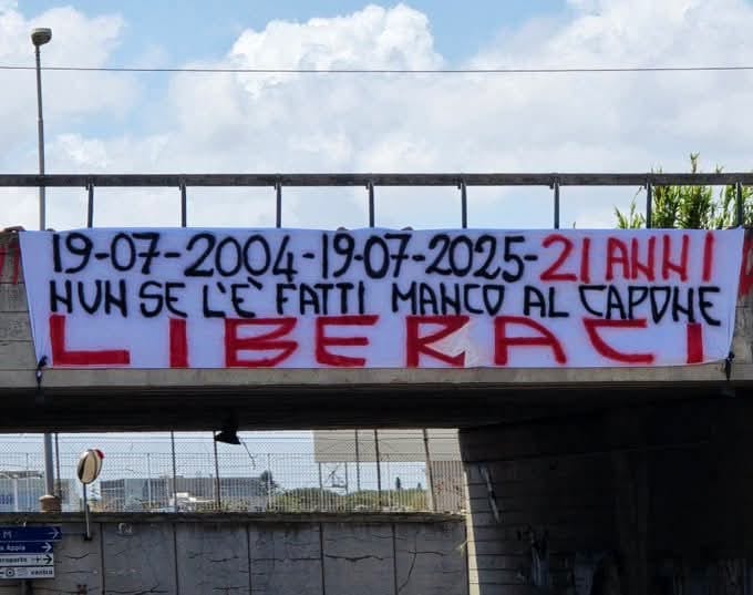 Continua la contestazione dei tifosi della Lazio contro il presidente Lotito. Per Roma e dintorni sono stati affissi diversi striscioni di protesta verso la gestione del patron biancoceleste. L'ultimo è stato attaccato vicino l'aeroporto di Ciampino e recita: "19/07/2004 - 19/07/2025: 21 anni nun se l'è fatti manco Al Capone. Liberaci". Di seguito la foto.