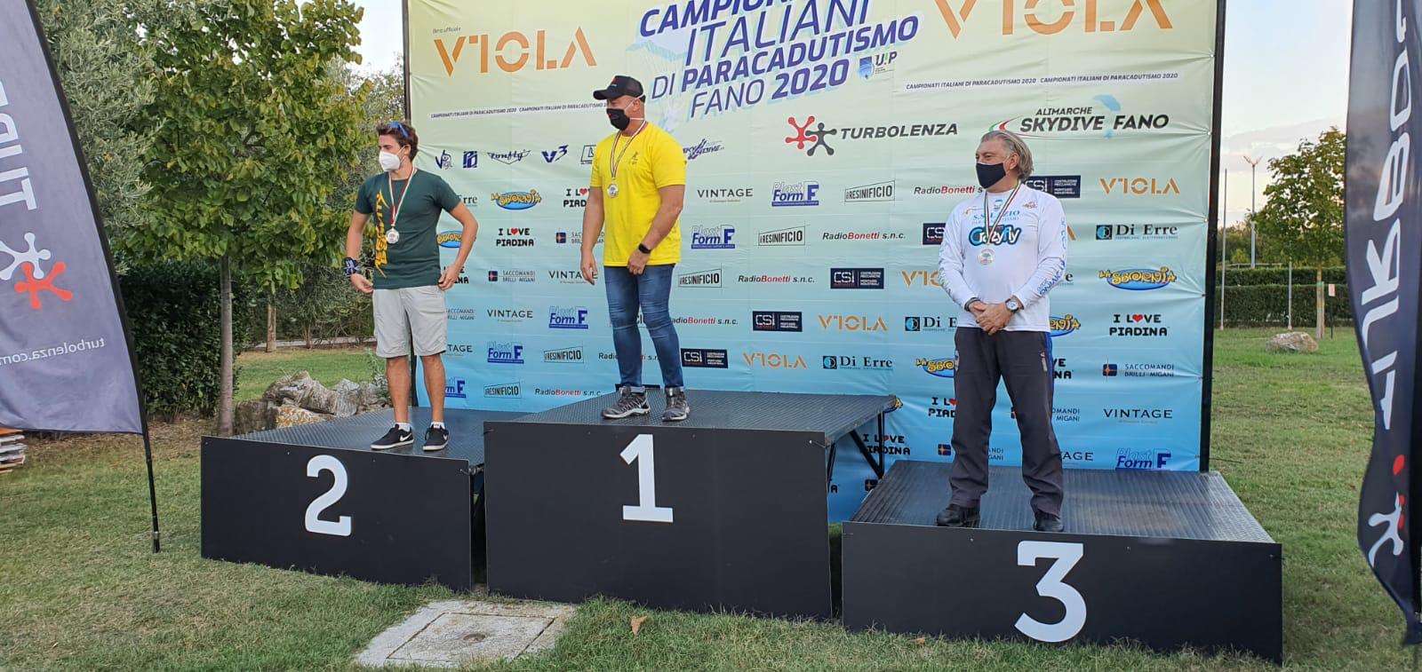 LAZIO PARACADUTISMO - Medaglia di Bronzo alla Lazio Paracadutismo ai Campionati Italiani di Paracadutismo Sportivo nella Speed Skydiving, “lo sport più veloce al mondo non motorizzato”. Record personale del Presidente Atleta Carmine “Lino “ Della Corte con 455,12 Km/h all’ottavo round. La Lazio Paracadutismo torna dopo due anni nella disciplina Speed Skydiving e lo fa nel Campionato 2020 che si è svolto a Fano dal 2 al 4 Ottobre, Campionato che rimarrà scolpito nella storia del Paracadutismo Italiano. Nonostante le restrizioni dovute al COVID -19, il 50% di atleti in meno e alle condizioni meteo che hanno condizionato fortemente i lanci di gara, il Campionato è andato avanti grazie alla grande sportività di tutti gli atleti in gara che hanno dato il massimo della loro disponibilità alla Direzione di gara, ai giudici e allo Staff iniziando a gareggiare alle 7.30 di mattina pur di portare al termine la competizione che si è conclusa come da regolamento senza nessun incidente.
