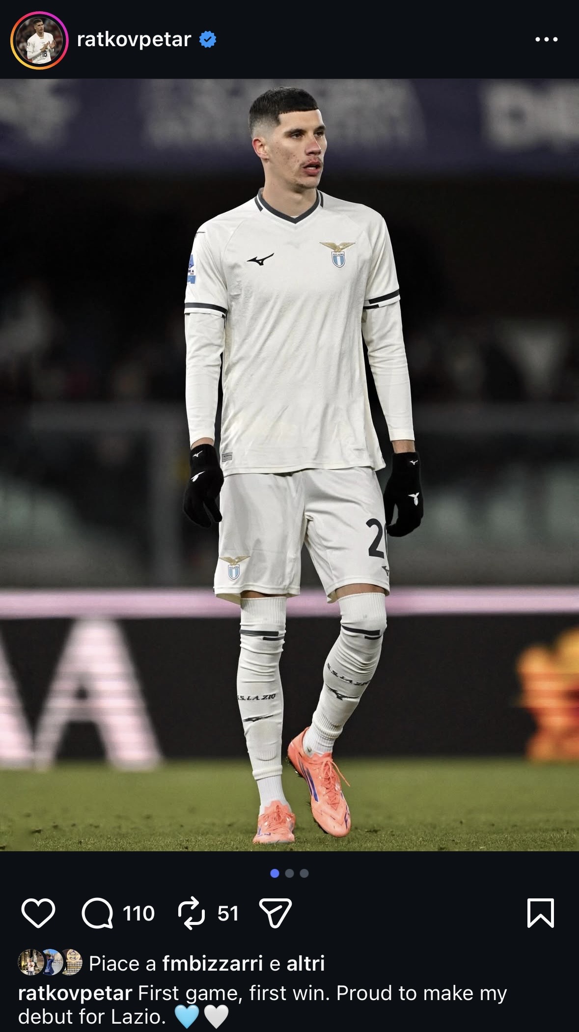 35 minuti in campo per il serbo e anche una buona occasione nel finale non sfruttata da Cancellieri. Alla fine del match l’attaccante ha così commentato l’esordio sui social: “Prima partita, prima vittoria. Orgoglioso del mio esordio con la Lazio”.