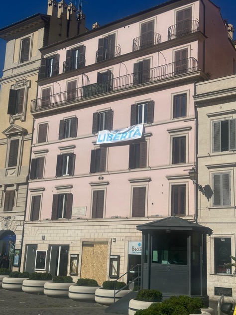 Buongiorno dal balcone di piazza del Parlamento, dove in 10 mesi si è passati dallo striscione LOTITO LIBERA LAZIO a LIBERTA'...#lazio #liberalalazio #Libertà #Lotito #Parlamento pic.twitter.com/MYcjhcyedJ