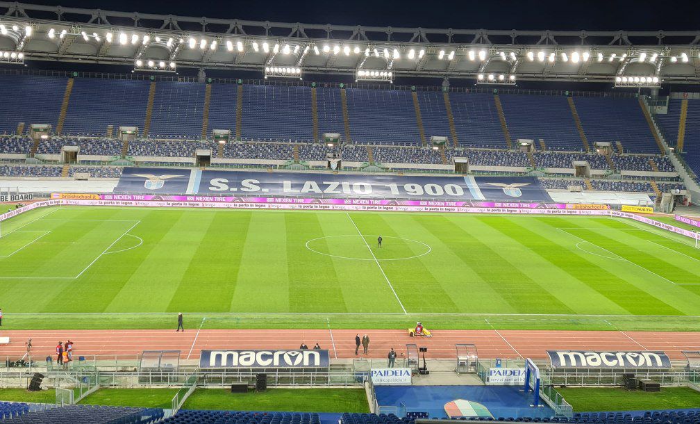 Manca meno di un'ora al fischio d'inizio di un derby storico, il primo dello storia che si giocherà di venerdì e senza tifosi sugli spalti. Sulle tribune vuote dell'Olimpico è stato posto un maxi-striscione dal club biancoceleste: "S.S. Lazio 1900". Tutto è pronto per la stracittadina: tifosi, addetti ai lavori e gli stessi calciatori attendono solamente il via dell'arbitro Orsato. Poi inizierà una sfida, come di consueto, senza esclusione di colpi.
