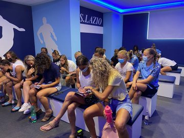 Il calcio femminile si sta preparando alla svolta epocale. Dalla stagione 2022/23 diventerà il primo sport italiano femminile a rientrare nel professionismo. Le atlete devono essere seguite e istruite a questo cambiamento, per questo l'Assocalciatori sta realizzando degli incontri con tutti i club per formare le giocatrici. Oggi Chiara Marchitelli, responsabile del settore femminile per l'AIC, e Fabio Appetiti, resposabile Relazioni Istituzionali dell'associazione, hanno fatto visita a Formello. I punti all'ordine del giorno della riunione con la Lazio Women sono stati il passaggio al professionismo, i percorsi di formazione e le votazioni per il Gran Gala del Calcio.