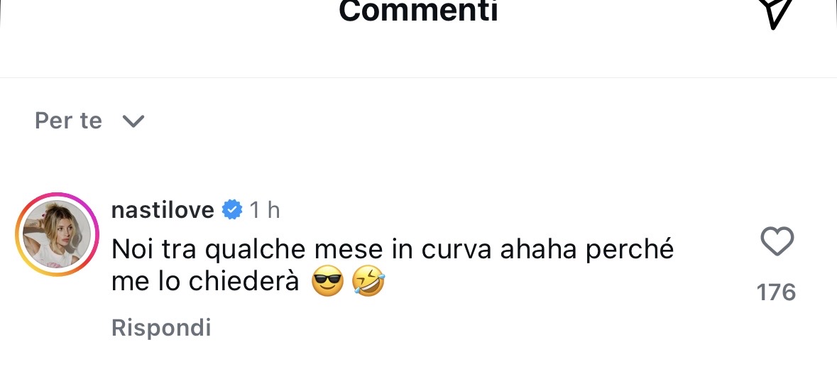 Immediata la risposta della mamma e moglie del giocatore, Chiara Nasti. L'influencer, scherzando, ha commentato il post scrivendo: "Noi tra qualche mese in Curva perché me lo chiederà".