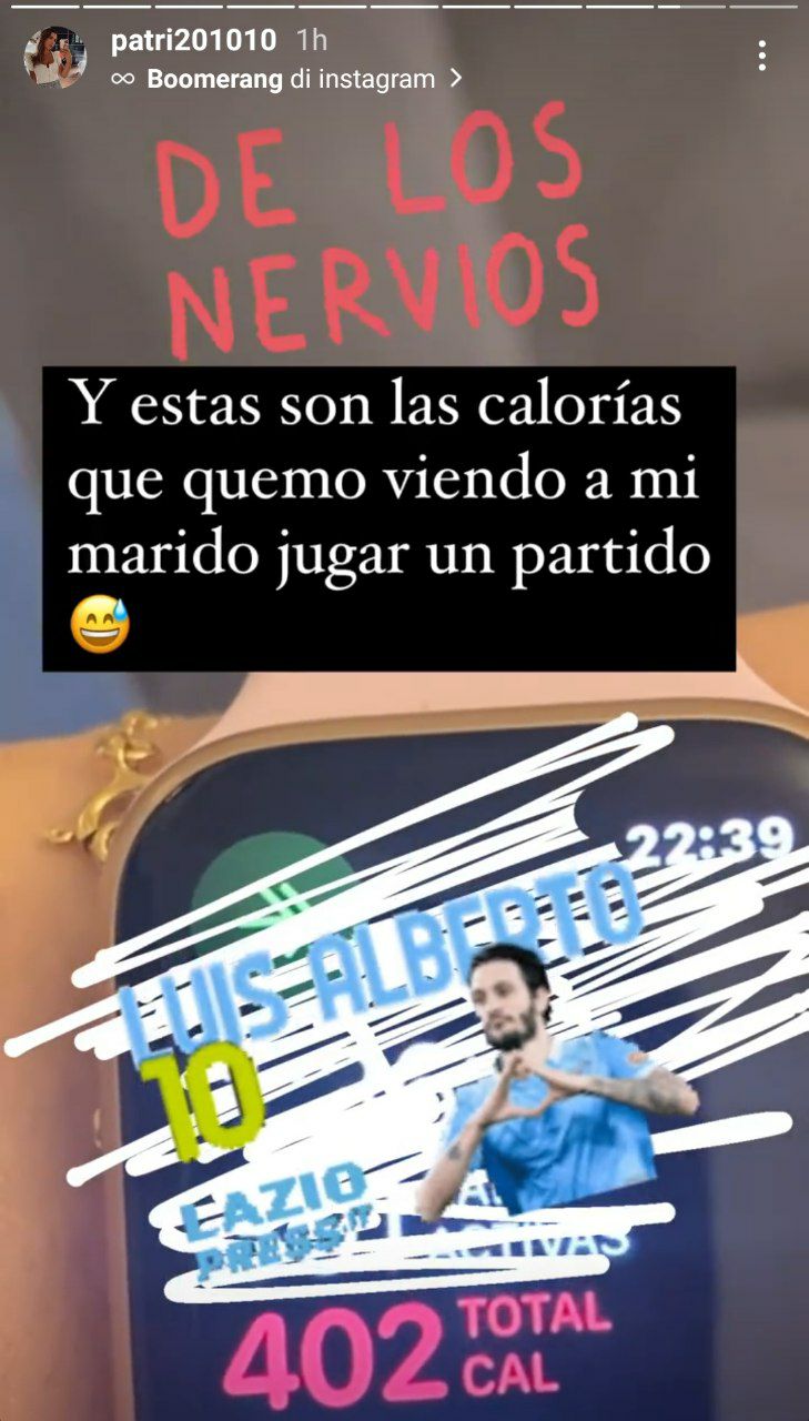 Le sfide della Lazio sono sempre tutt'altro che scontate. E i tifosi biancocelesti lo sanno bene. Ha avuto modo di capirlo in prima persona anche Patricia, la moglie di Luis Alberto. La spagnola, oltre a esultare pubblicamente per la vittoria di questa sera, ha condiviso sul proprio profilo Instagram il numero di calorie bruciate durante la sfida con il Milan, per poi ironizzare sull'argomento: "E queste sono le calorie che brucio seguendo mio marito giocare una partita".