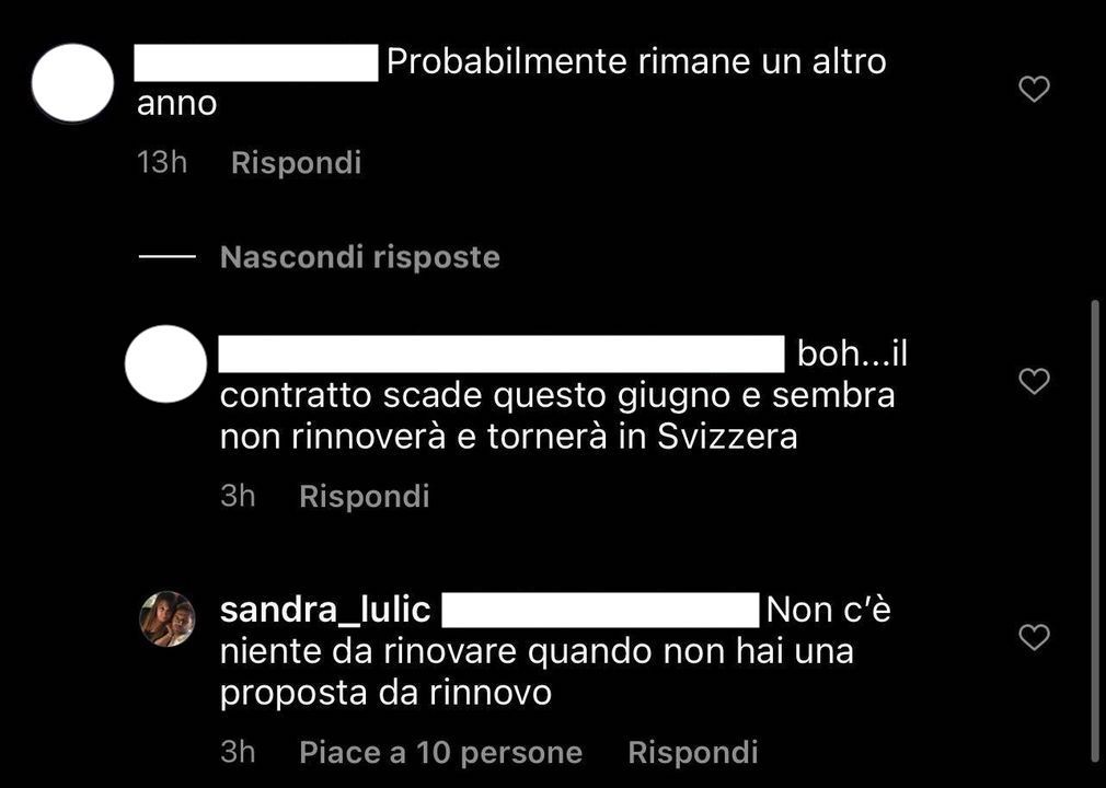"Non c'è niente da rinnovare quando non hai una proposta di rinnovo". È stato questo il commento di risposta a un tifoso su Instagram di Sandra Lulic, moglie di Senad, con il quale ha fatto capire che la Lazio non avrebbe proposto nessun rinnovo di contratto al suo capitano. Contro il Sassuolo Lulic potrebbe scendere in campo per l'ultima volta con la maglia biancoceleste dato che il suo contratto scadrà a giugno. Le prossime settimane saranno decisive per capire meglio il suo futuro.