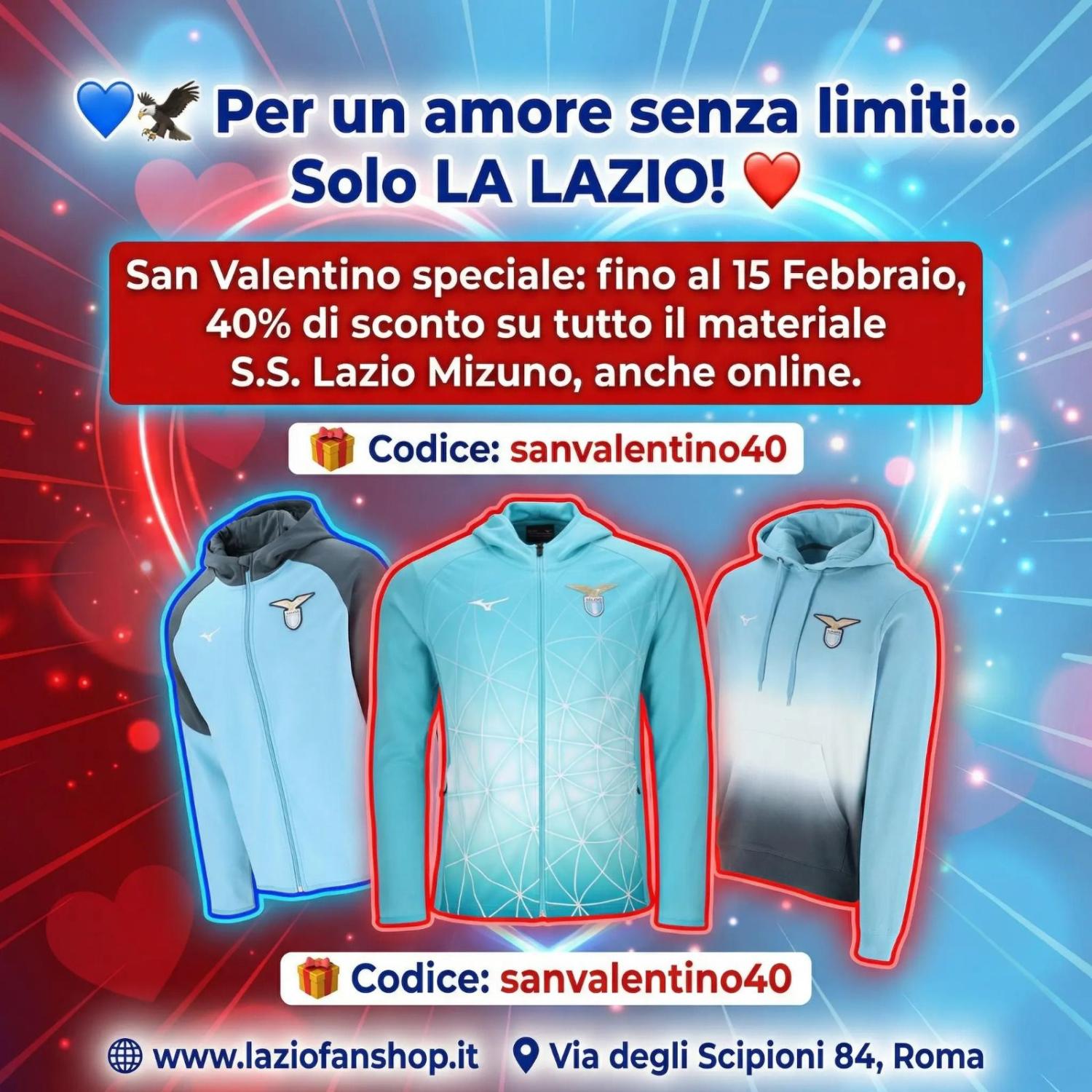 OFFERTA DI SAN VALENTINO: SCONTI SPECIALI AL LAZIO FAN SHOP