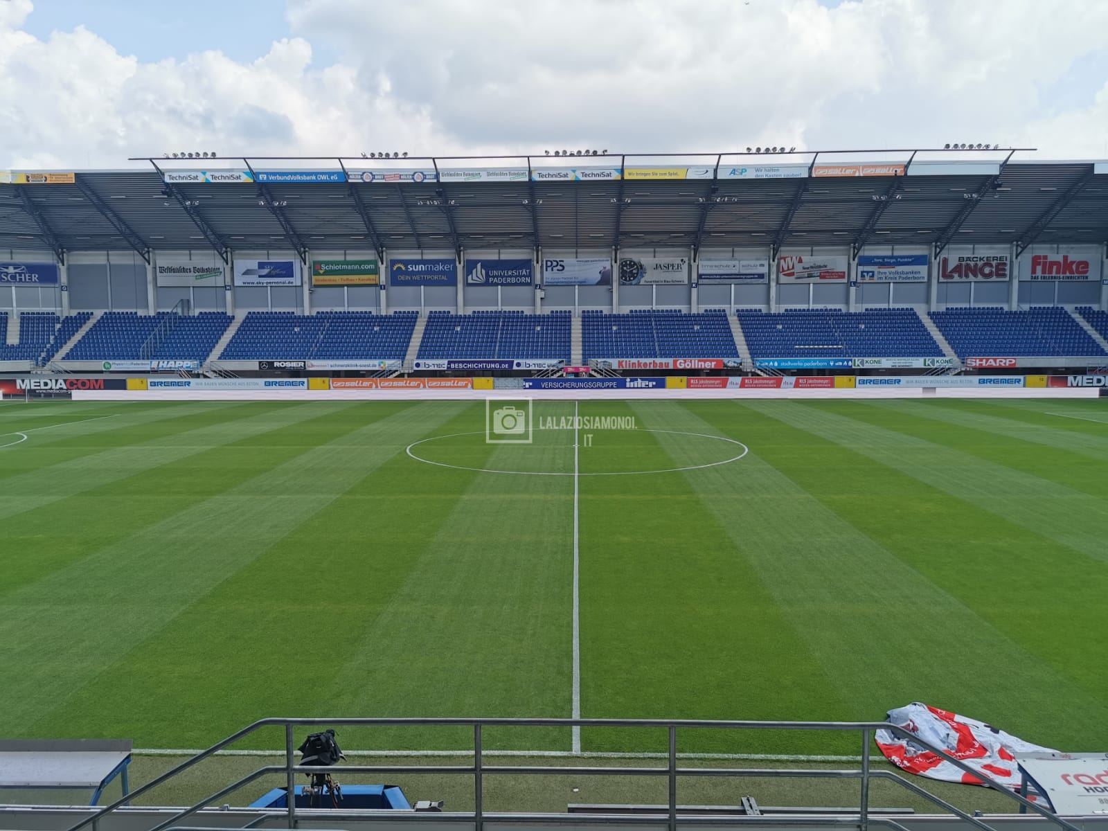 PADERBORN - La Lazio di nuovo in campo, questa volta in Germania. A Paderborn ecco la sfida alla Benteler Arena, un gioiellino di stadio da circa 15mila posto. Il più piccolo in Bundesliga. Ampi parcheggi, larghe piste ciclabili e per l’occasione dei dieci anni dell’accademia per ragazzi del club, ci sono anche gonfiabili e giostre per i bambini. I tedeschi sono al debutto stagionale nel proprio impianto. Lalaziosiamonoi.it vi porta a scoprire lo stadio e gli esterni con gli scatti realizzati prima del fischio d’inizio fissato per le ore 16.