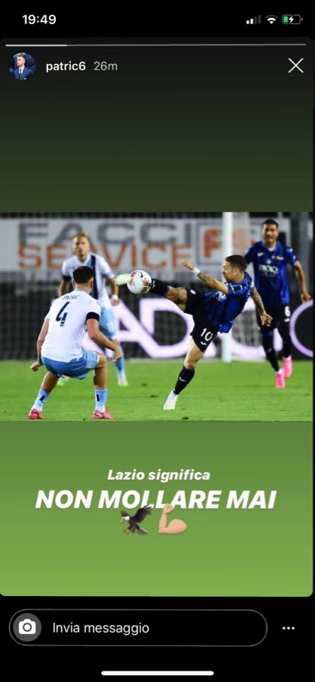 L'Atalanta è già il passato. Deve essere così, la Lazio non può permettersi di pensare troppo a quanto accaduto ieri perché tra poco più di 48 ore sarà di nuovo in campo contro la Fiorentina. Perciò è necessario rialzare la testa e pensare al prossimo match. Dello stesso avviso anche Patric che ha caricato l'ambiente su Instagram: "Lazio significa non mollare mai".