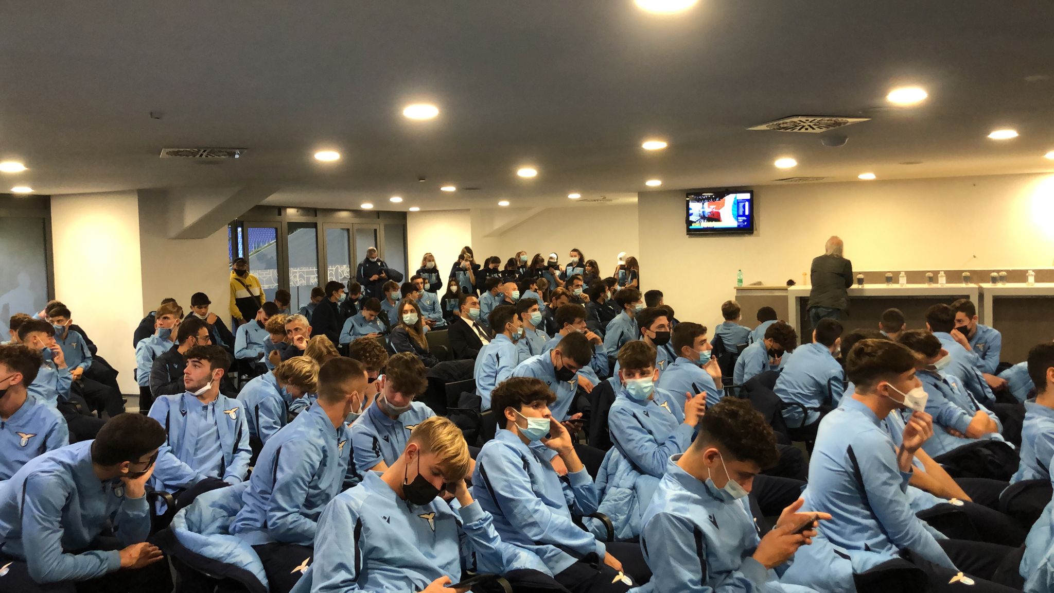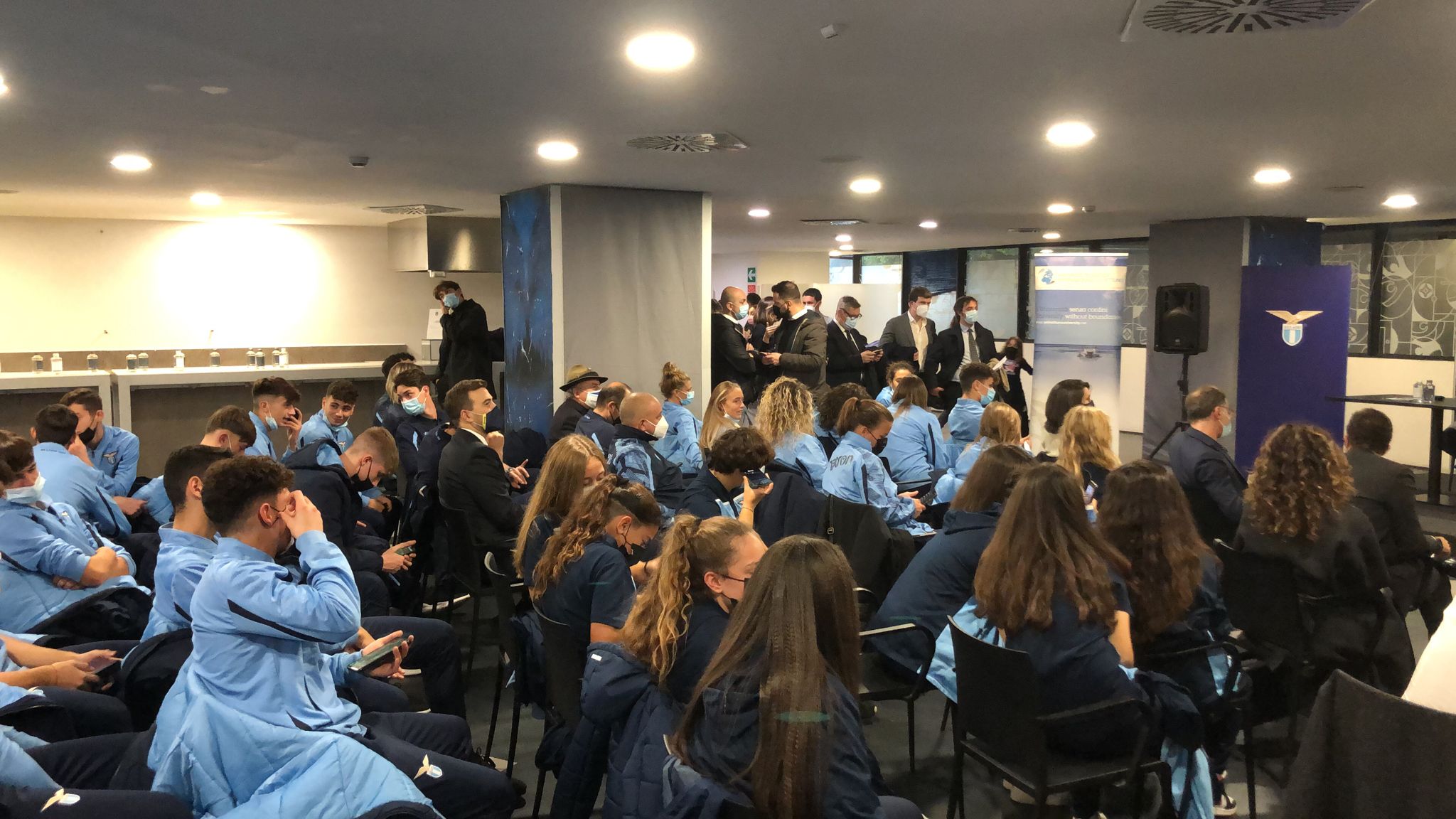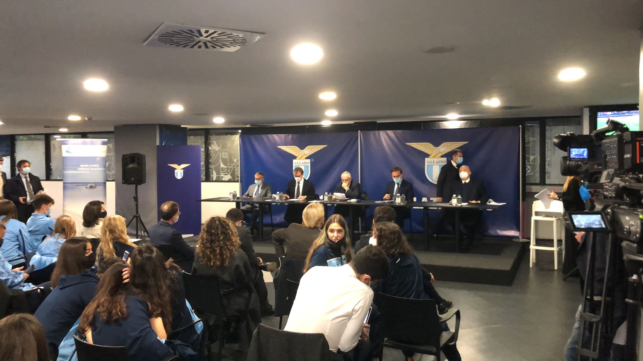 AGGIORNAMENTO ORE 15:10 - È quasi tutto pronto per l'inizio della conferenza. Oltre al presidente Lotito, al responsabile del settore giovanile Bianchessi, presenti tant giovani biancocelesti (dall'Under 15 all'Under 18) e anche la prima squadra e la primavera della Lazio Women.