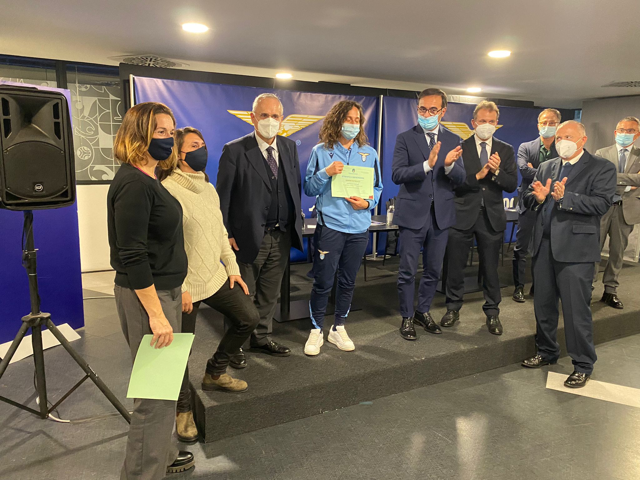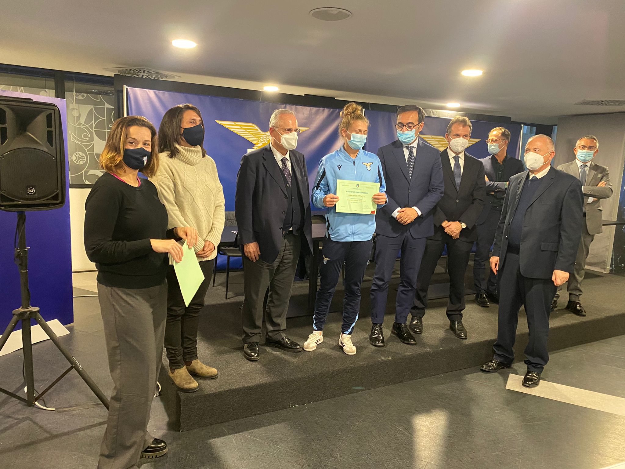 AGGIORNAMENTO ORE 16 - Premiati i due studenti migliori dello scorso anno: Lorenzo Ferro (Primavera) e Emma Guidi (Lazio Women). Patentino UEFA a Serena Natalucci, Emma Guidi, Francesca Pittaccio, Andrea Campoli
