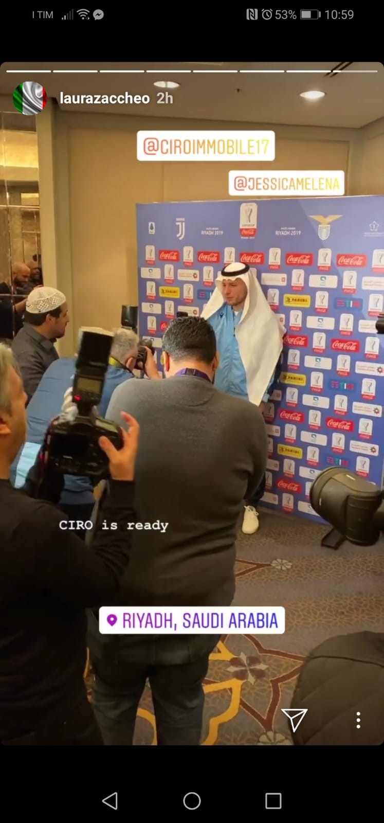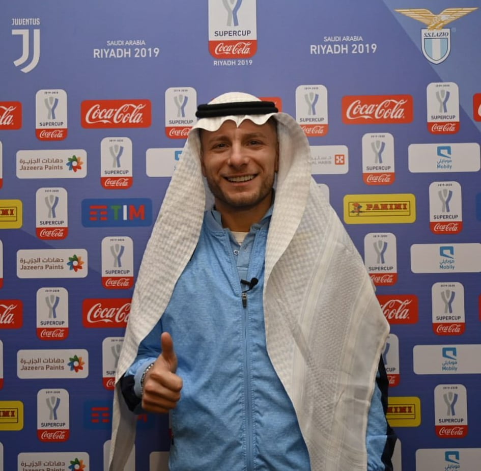 La partenza anticipata verso Riyad ha anche la funzione di ambientarsi in terra araba. La Lazio non perde tempo e sin da subito "socializza" con la cultura mediorientale. Oggi è prevista una conferenza con la stampa locale, ma già in mattinata Inzaghi, Immobile e Correa si sono prestati per un'intervista alle tv saudite. Il tutto è avvenuto presso l' Hotel Four Seasons, la struttura che ospita i biancocelesti. Scherzi e sorrisi hanno accompagnato il prima approccio con i media locali: Ciro Immobile si è perfettamente calato nella parte e ha indossato la kefiah, il tipico copricapo della tradizione araba.