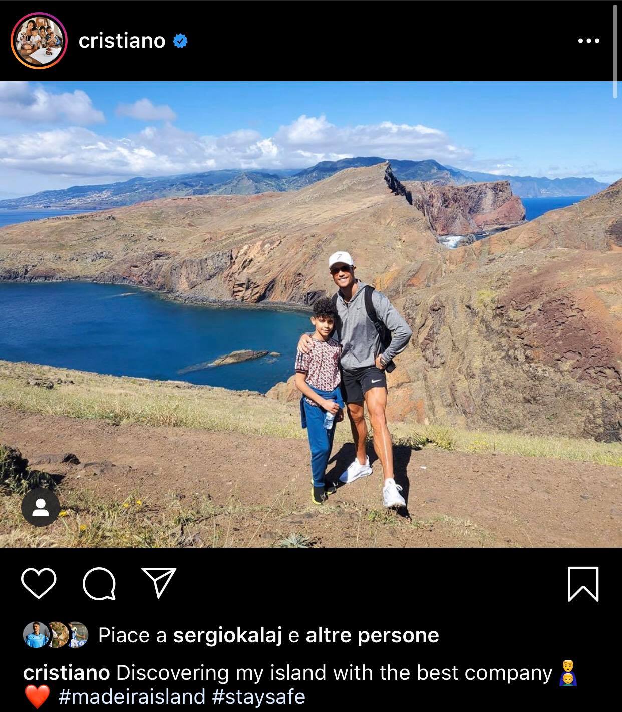 Lavori in corso per la ripresa della Serie A, i giocatori sperano di poter tornare il prima possibile sui campi da gioco. Eppure, non proprio tutti sembrano avere così fretta. Diversi giocatori della Juventus sono attualmente lontani da Torino, e tra questi c'è anche Cristiano Ronaldo. Il portoghese si trova a Madeira con la sua famiglia, continua a godersi la quarantena in attesa di novità sulla ripresa della stagione. Su Instagram ha pubblicato una foto che lo ritrae insieme al figlio, con tanto di didascalia: "Alla scoperta della mia isola con la miglior compagnia". Insomma, una gita fuori porta tra un allenamento e l'altro. In Italia continua la fitta diatriba tra istituzioni e mondo del calcio. Tutti si stanno preparando per farsi trovare pronti. Qualcuno, almeno sembra, sta vivendo questi giorni con più tranquillità.