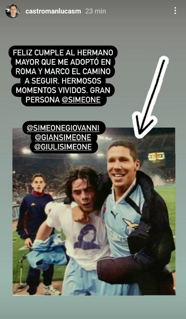 Nel giorno del suo compleanno, Diego Simeone sta ricevendo un quantità infinita di auguri da parenti, amici, ma anche ex compagni di squadra. È il caso, ad esempio, di Castroman. L'ex Lazio ha avuto modo di conoscere 'El Cholo' quando entrambi vestivano la maglia biancoceleste, ed è stato per lui una sorta di guida. L'ha spiegato l'ex Vélez Sarsfield nel post condiviso sul proprio profilo Instagram: "Felice compleanno al fratello maggiore che mi ha adottato a Roma e che mi ha indicato la strada de seguire. Bellissimi momenti vissuti insieme. Grande persona, Simeone".