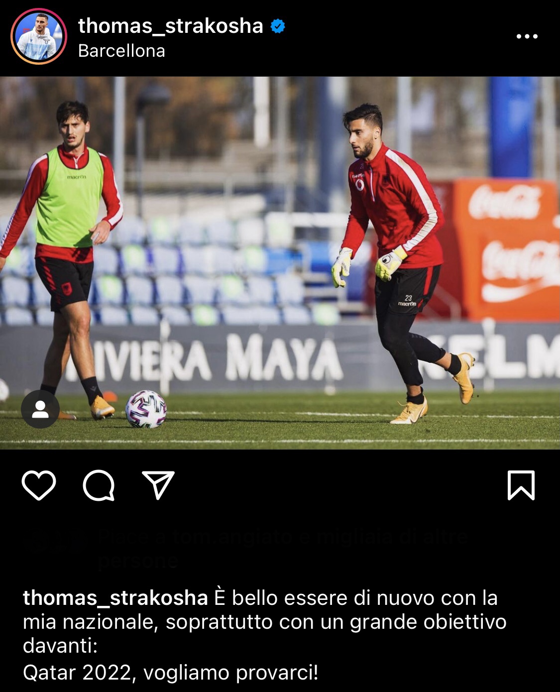Non difende i pali della Lazio da un po' ma Thomas Strakosha è pronto per tornare a giocare con la sua nazionale, l'Albania. Il portiere della Lazio è uno dei biancocelesti che in questa settimana saranno impegnati con le rispettive squadre in vista delle qualificazioni ai Mondiali del Qatar del 2022. Tantissima gioia per l'estremo difensore che ha voluto condividere sui social: "È bello essere di nuovo con la mia nazionale, soprattutto con un grande obiettivo davanti: Qatar 2022, vogliamo provarci!".