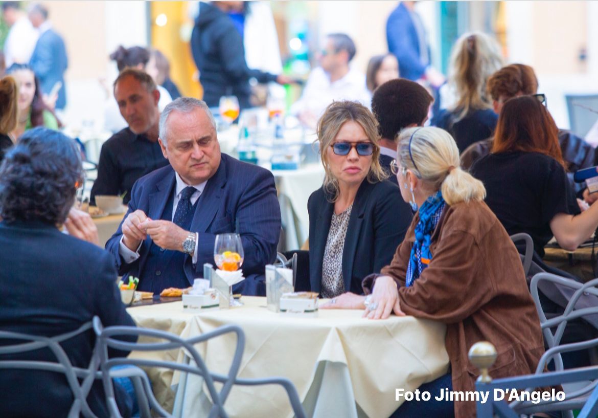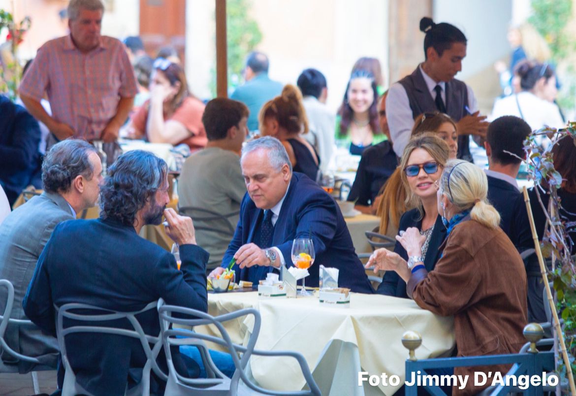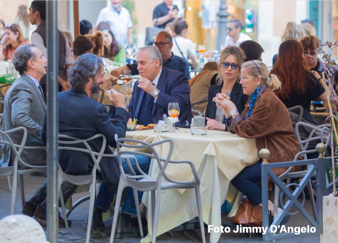 La bella vittoria contro il Sassuolo non concede relax agli uomini di Sarri che domani saranno già impegnati nella delicata sfida contro il Milan. Qualche ora di tranquillità e spensieratezza invece se l'è concessa Claudio Lotito, "beccato" nel noto bar "Ciampini" in Piazza San Lorenzo in Lucina per un aperitivo in compagnia. Ai tavoli del locale, il patron laziale si è gustato un cocktail insieme alla moglie Cristina Mezzaroma, Anna Falchi e il compagno Walter Rodinò, il tutto condito da sorrisi, abbracci... e qualche tartina da inforchettare!