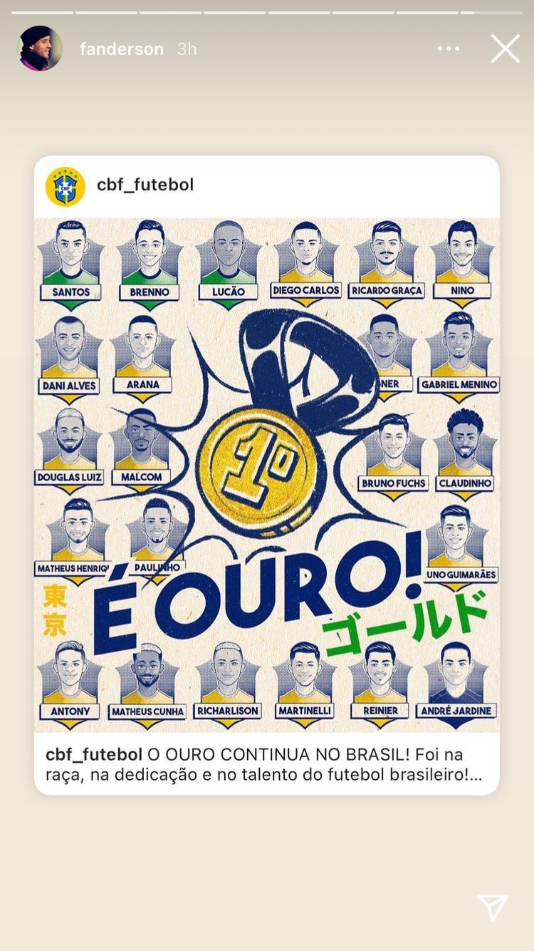 Oggi si è disputata la finale olimpica del calcio tra Brasile e Spagna. È stata una gara intensa che ha tenuto i brasiliani col fiato sospeso fino all’ultimo. La gara è stata decisa infatti ai tempi supplementari grazie al gol di Malcom che permette alla Seleçao aggiudicarsi l’oro olimpico. L’impresa del Brasile alle Olimpiadi si è replicata dopo il successo di 5 anni fa. Nonostante la distanza, Felipe Anderson non ha mai fatto mancare il suo supporto ai compagni di nazionale esultando con loro per la vittoria. L’attaccante biancoceleste ha pubblicato una Instgram stories sul suo profilo celebrando l’oro olimpico, ricordando anche quello delle Olimpiadi di Rio De Janeiro del 2016 che lo ha visto tra i protagonisti.