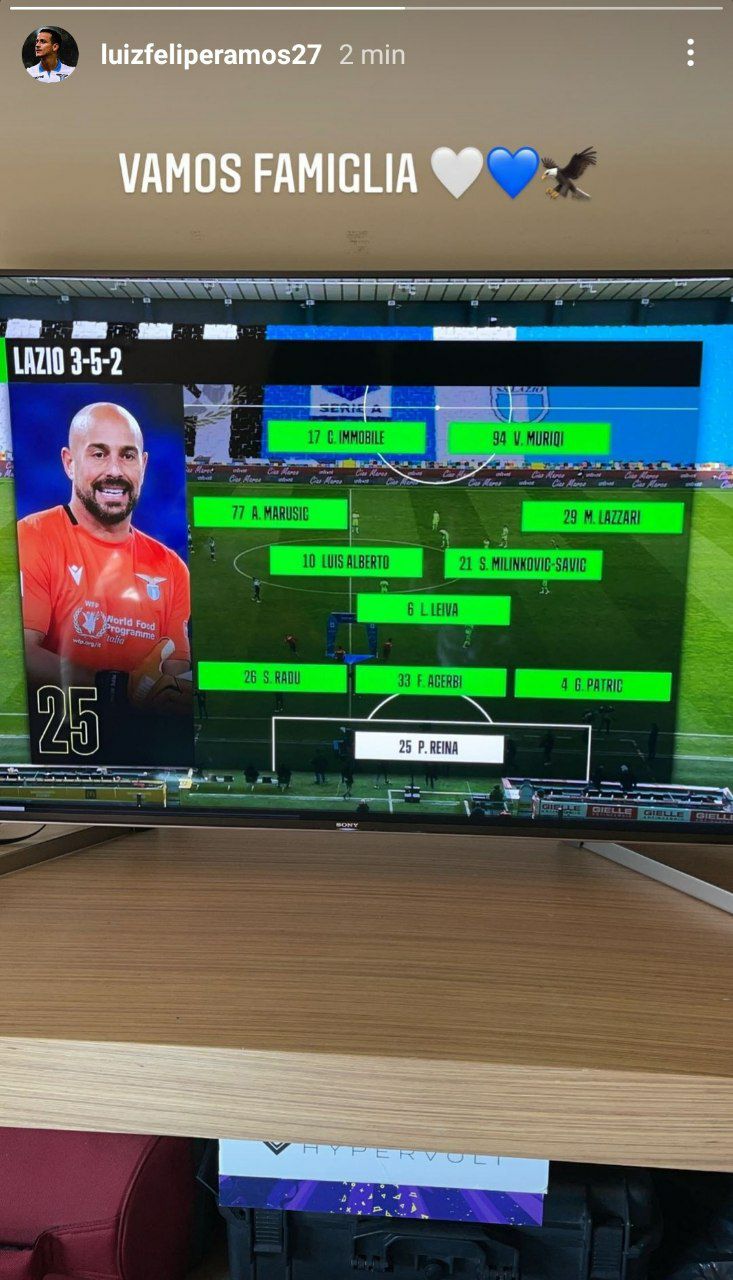 In occasione dell'ennesima gara saltata, Luiz Felipe, alle prese ancora con il recupero post-operatorio, ha fatto comunque arrivare il proprio sostegno alla squadra. Il brasiliano, pronto a iniziare l'ultima parte di lavoro per poter finalmente tornare a disposizione di Inzaghi, ha pubblicato su Instagram uno scatto fatto alla televisione con il match tra Udinese e Lazio in onda, per poi aggiungere: "Andiamo, famiglia".