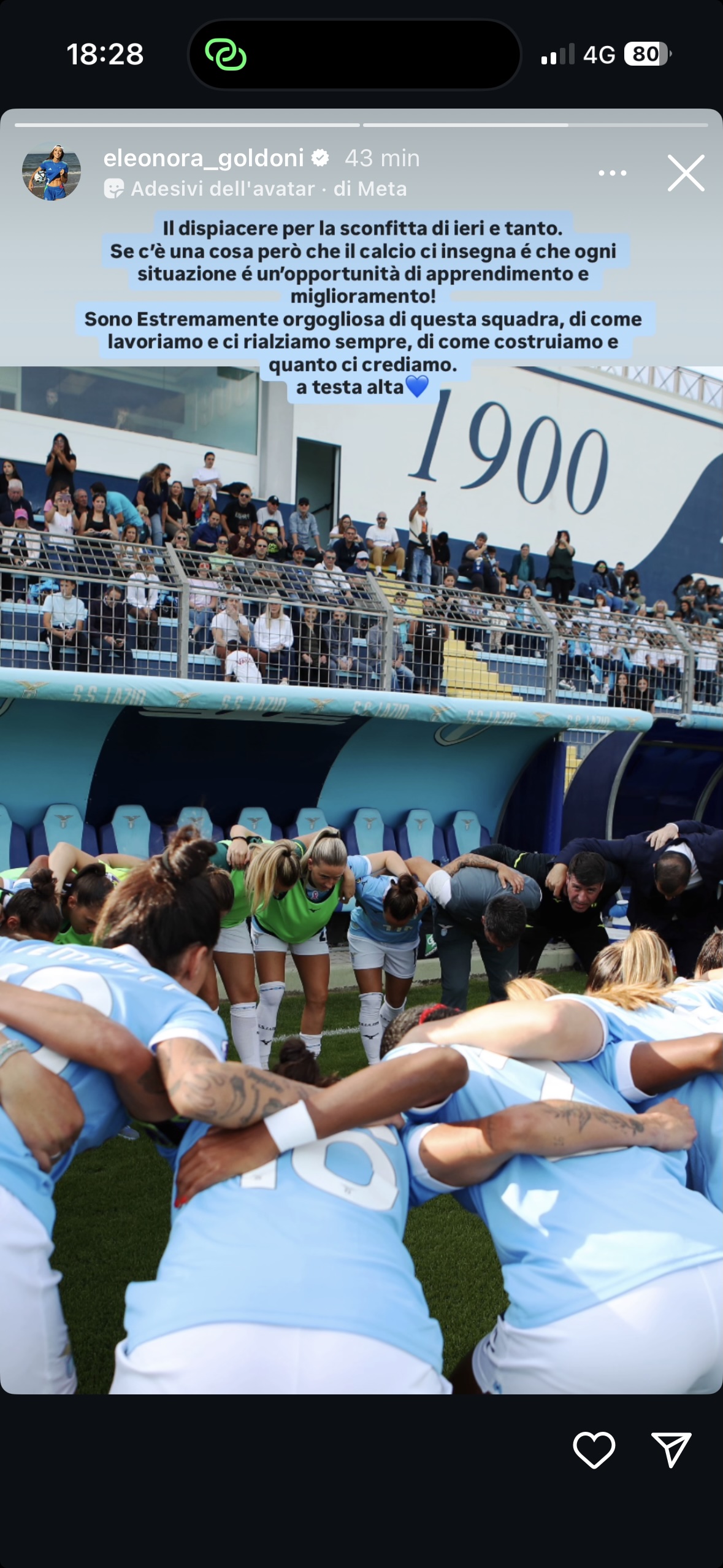 Via social, all'indomani della gara, Goldoni ha commentato così la prestazione e il momento del gruppo: "Il dispiacere per la sconfitta di ieri è tanto, se c'è una cosa però che il calcio ci insegna è che ogni situazione è un'opportunità di apprendimento e miglioramento! Sono estremamente orgogliosa di questa squadra, di come lavoriamo e ci rialziamo sempre. Di come costruiamo e quanto ci crediamo. A testa alta!".