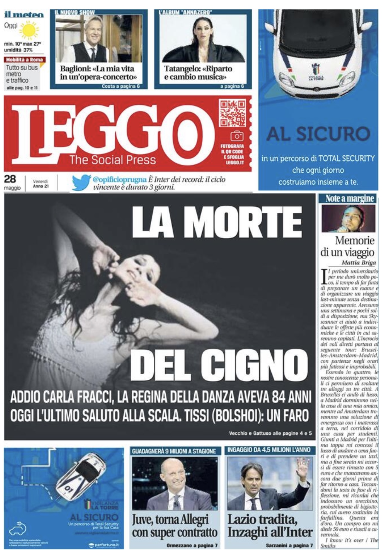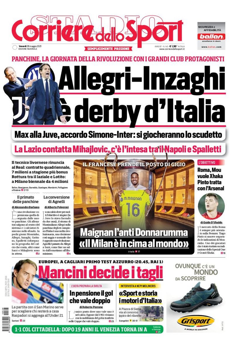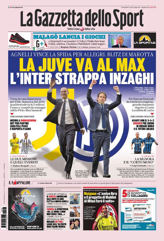 Simone Inzaghi ha lasciato la Lazio. Dopo 22 anni fa un po' specie dirlo, ma da ieri è di fatto realtà. Il tecnico ha deciso di sposare il progetto Inter voltando le spalle alla società biancoceleste dopo la stretta di mano che sapeva di accordo della sera precedente. Un grande tradimento che fa discutere e che ha scatenato le reazioni di massa del popolo laziale. La notizia è ovviamente importantissima e anima le prime pagine dei quotidiani, sia quelli sportivi che quelli generalisti. C'è chi parla di tradimento dell'allenatore piacentino, chi di autentico scippo operato dell'Inter e chi sottolinea la nuova sfida che lo attende con Max Allegri che tornerà alla Juventus. A fine articolo la gallery completa con le prime pagine.