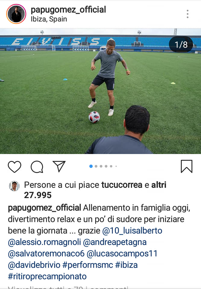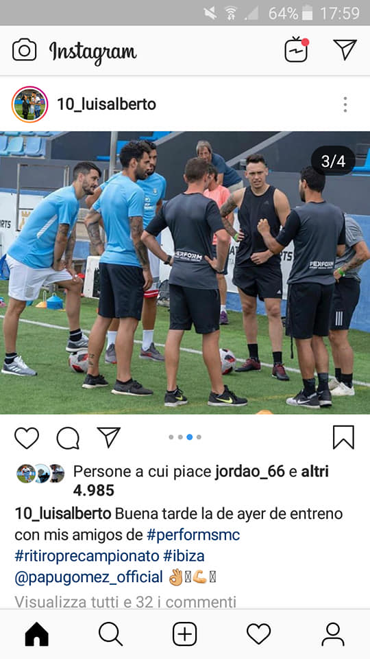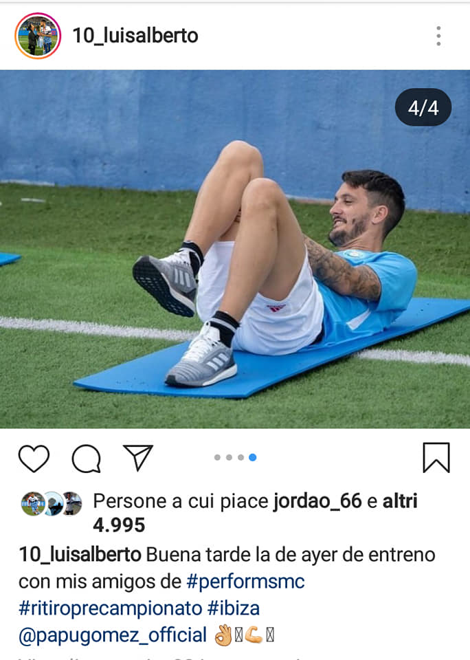 Tra un bagno al mare e una sosta in spiaggia, Luis Alberto si allena con lo staff di Perform Sport Medical Center a Ibiza. Pomeriggio di sudore e fatiche, insieme ad altri giocatori: con lui, sul campo del Can Misses, anche il Papu Gomez, Alessio Romagnoli, Andrea Petagna e Lucas Ocampos. Tutti a lavoro per farsi trovare ancora più pronti durante il ritiro precampionato: "Bel pomeriggio di allenamento, quello di ieri, con gli amici di Perform", ha scritto su Instagram il centrocampista spagnolo. Non risparmiando poi le battute con Correa: "Avete sudato?", gli chiede l'argentino. "Io giusto per sembrare sexy", gli risponde l'ex Siviglia. Che, tra uno scherzo e l'altro, dà "appuntamento" ad Auronzo al compagno di squadra. Lì si comincerà a fare sul serio.